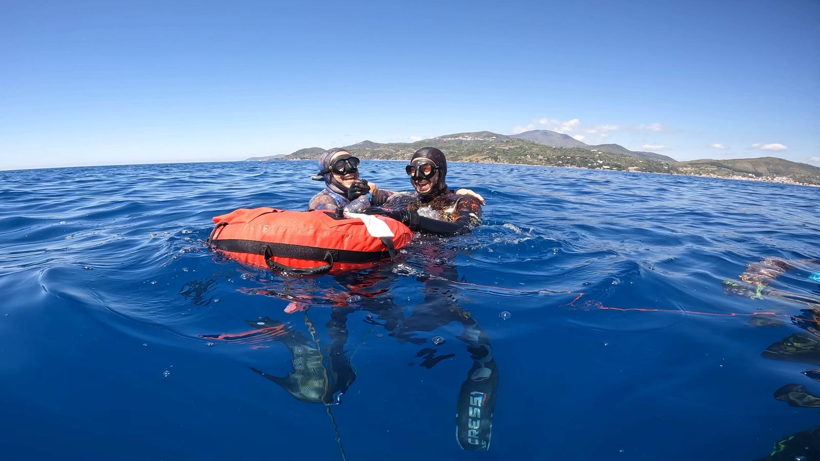 Accanto a lui, tra gli appassionati che hanno reso possibile questa iniziativa, c’è anche Francesco Uboldi, esperto pescatore subacqueo che vive stabilmente nel Cilento. La sua conoscenza del mare e del territorio rappresenta un valore fondamentale e potrebbe essere decisiva per dare continuità al progetto, assumendo un ruolo centrale nello sviluppo futuro delle attività legate all’apnea.